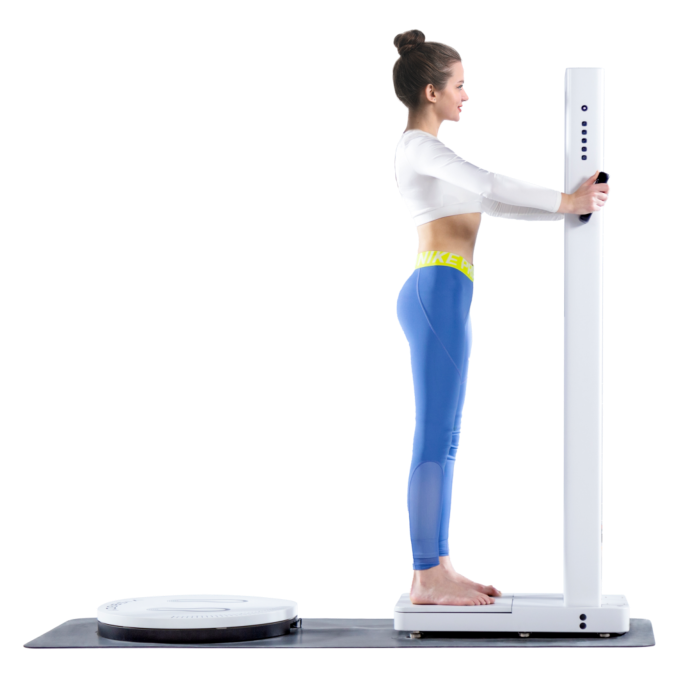 MUF-teknologia yhdistää automaattisen mekaanisen kääntöalustan, syvyyskameran sekä AI-vision ja optisen rekonstruktion. Tuloksena on kattava, ei-invasiivinen kehon mittaus.